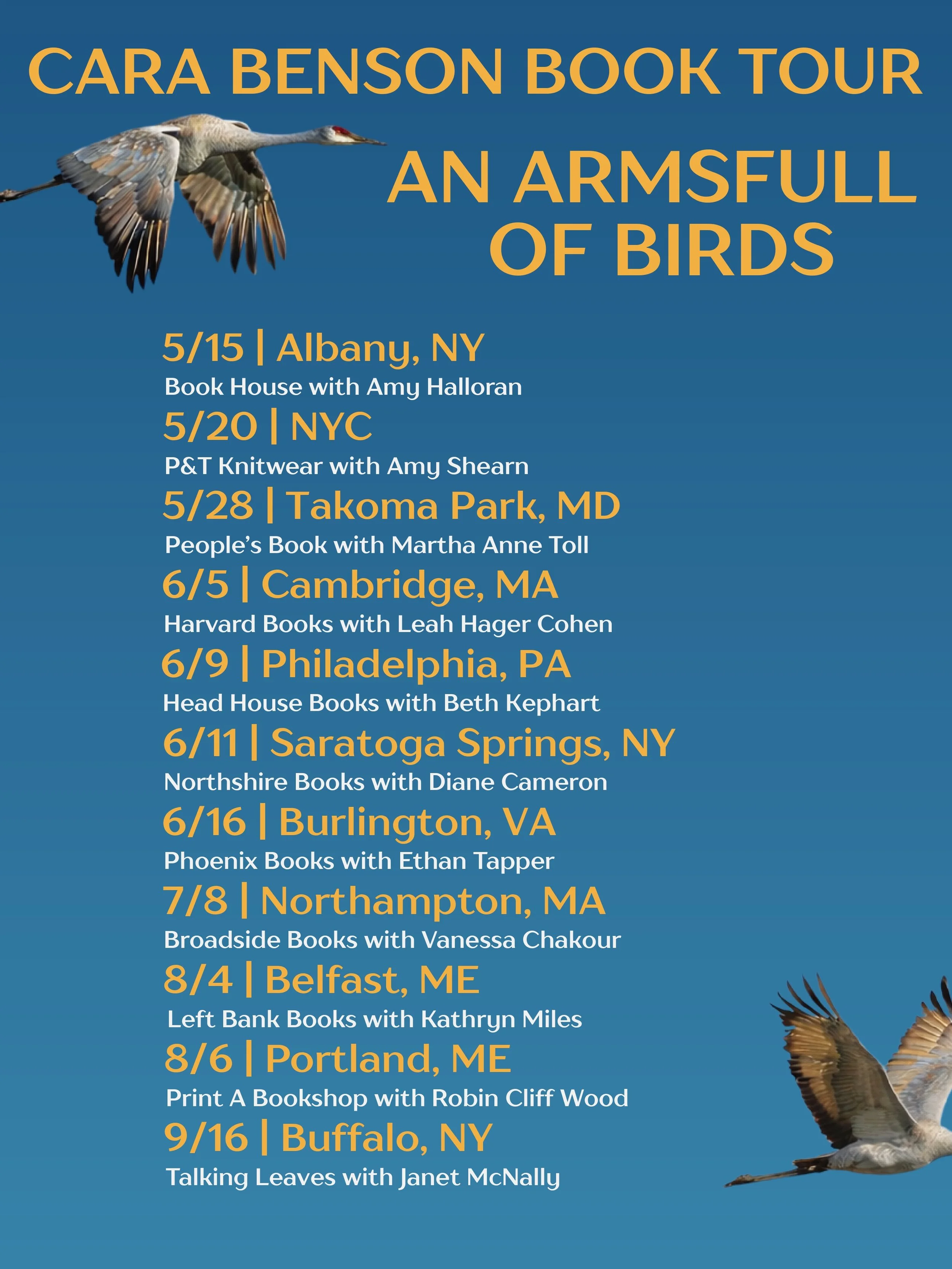 “Like any true field guide, Cara Benson’s An Armsfull of Birds is about wanting to know—how to care for the natural world and its myriad creatures, how to live an engaged and ethical life, and, at heart, how to survive (and learn from) indelible loss. ‘Loss,’ Benson writes, ‘has everything to do with loving.’ This keenly observed, honest, and emotionally resonant memoir opens a way for us all.”